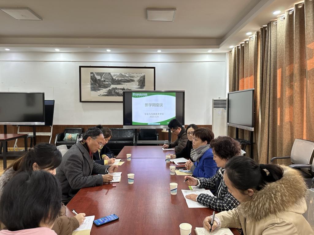 2月20日是公司新学期开学第一天,董事长蔡飞到公司调研指导工作并开展座谈交流。教务处副处长李文静、公司党总支书记李春秋、经理王清风、副经理宋琛琛等参加座谈会。