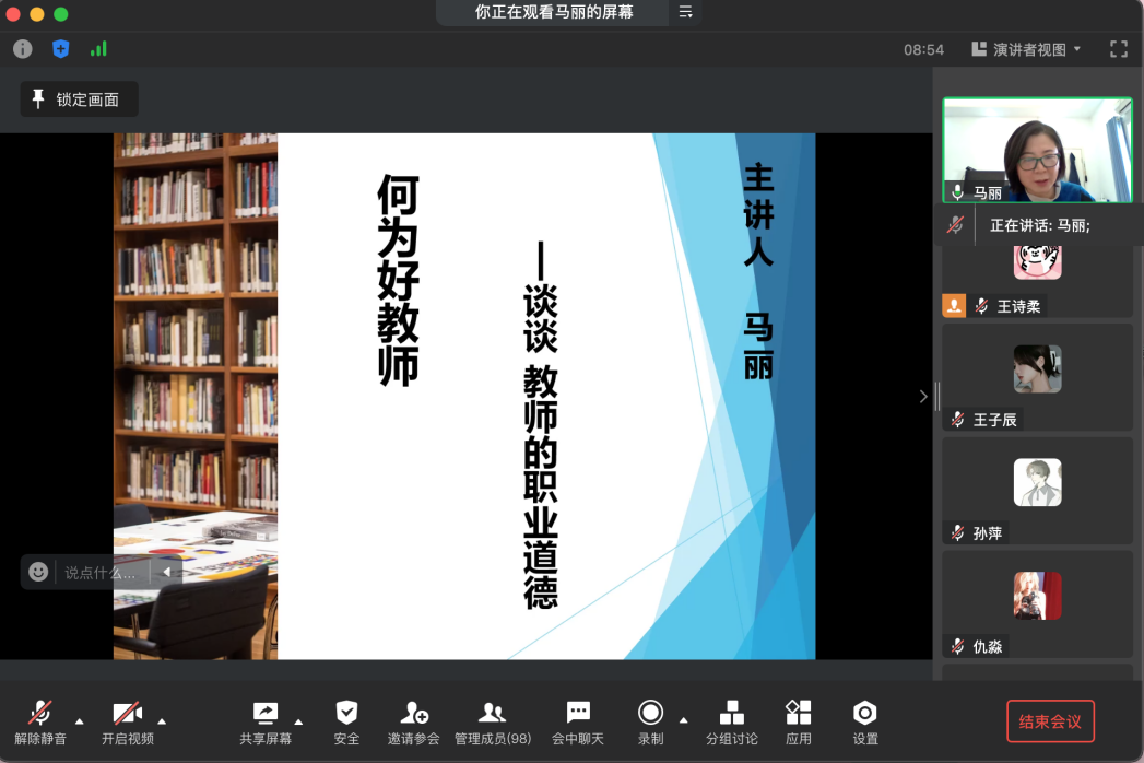 12月7日下午,公司马丽教授为2019级、2020级卓培项目员工开设“何为好教师”“谈谈教师的职业道德”专题讲座。本次活动由王诗柔老师主持。