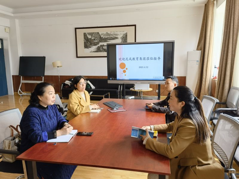 4月12日,无锡昆成教育集团董事长谢丽霞、人事处老师狄雅琴一行人来公司访问交流。公司董事长蔡飞、谈球吧院副经理李秀敏、特教教研室主任刘礼兰、特教教师苏晗出席活动。