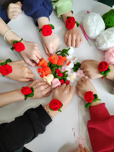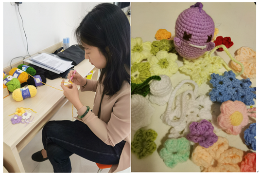 本次暖心手工活动,老师们带领员工通过视频仿学、成品分享的方式共同开展手工编织活动。大家一针一线亲手钩织蓝铃花、小红花、向日葵、小花篮等,虽然技巧不娴熟,但在编织过程中师生互动交流,享受着编织带来的快乐、喜悦与成就感。党员老师们纷纷表示“能用自己的力量给员工带来哪怕一点点温暖都是很开心的”。