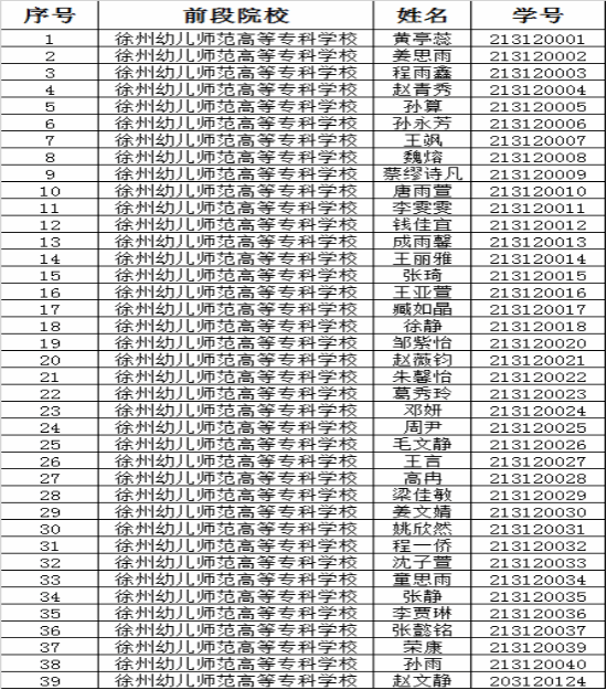 依据《南京晓庄公司高职与本科“3+2”分段培养项目转段升学考核工作办法(试行)》(南晓院【2019】20号)文件有关规定,经员工本人申请,谈球吧资格审查,教务处复查等程序,拟同意公司2021级学前教育专业“3+2”合作培养员工黄亭蕊等39位同学转段申请,王子锋同学因教团队格面试成绩不合格不符合转段要求。