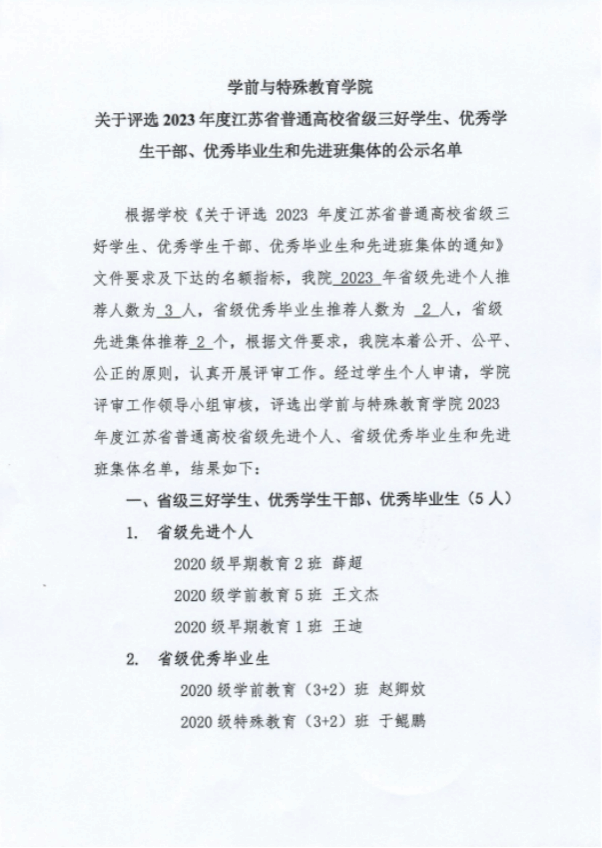 谈球吧关于评选2023年度江苏省普通高校省级三好员工、优秀员工干部、优秀毕业生和先进班集体的公示名单